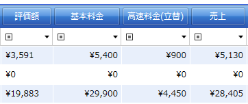 Version 4.8.29.1 で変更可能な料金は「基本料金」「高速料金」のみです。伝票検索画面の初期状態だとこの2項目は非表示なので、表示するよう変更します。