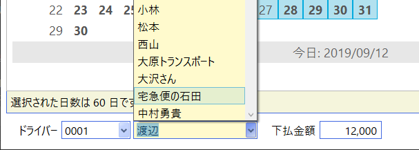 伝票が作成済の日にちは、選択が無効状態で表示されます。