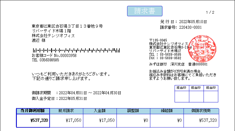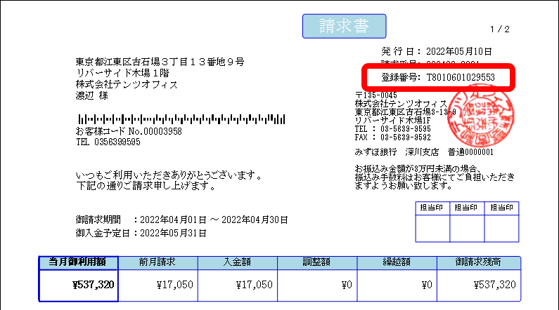 請求元に「事業者登録番号」が設定されてない場合、従来どおりの請求書が表示されます。