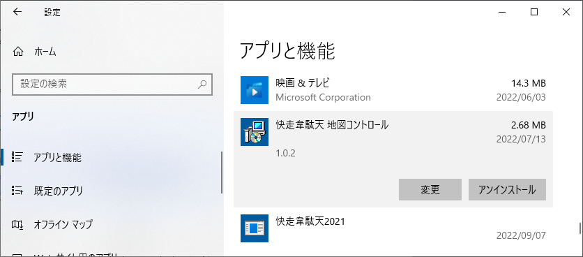 更新が成功すると「設定」→「アプリ」→「アプリと機能」に以下のように表示されます。バージョンが「1.0.2」と表示されていれば最新版に更新完了です。